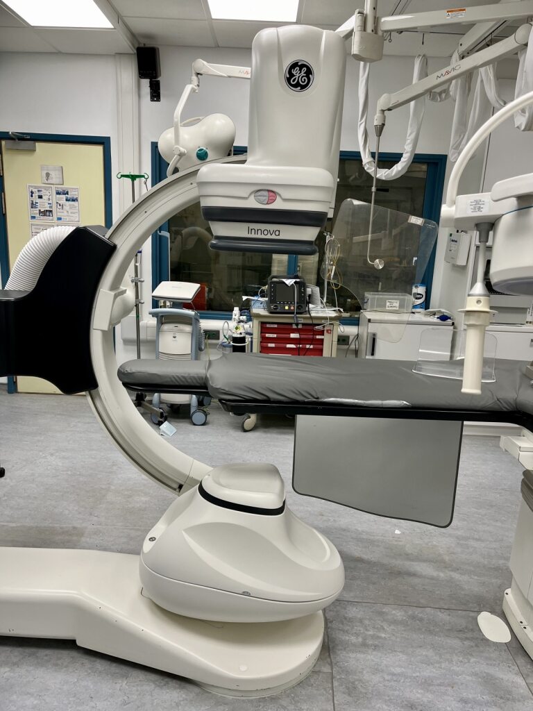 The GE Innova IGS 520 is designed to deliver exceptional image clarity while minimizing radiation dose. It features advanced technologies like InnovaSense, which uses an active sensor to automatically adjust the gantry based on patient contouring, ensuring optimal positioning of the image receptor for precise imaging and enhanced patient safety.
